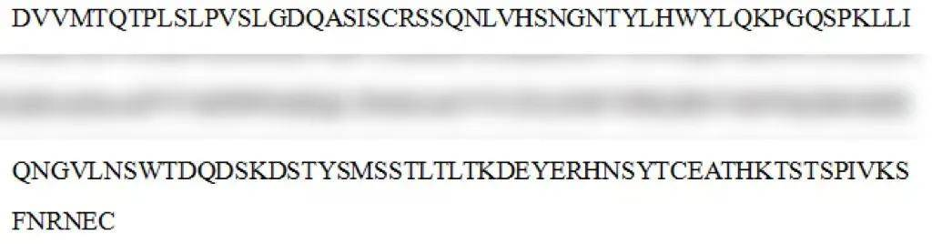获取抗体轻链与重链的氨基酸序列。