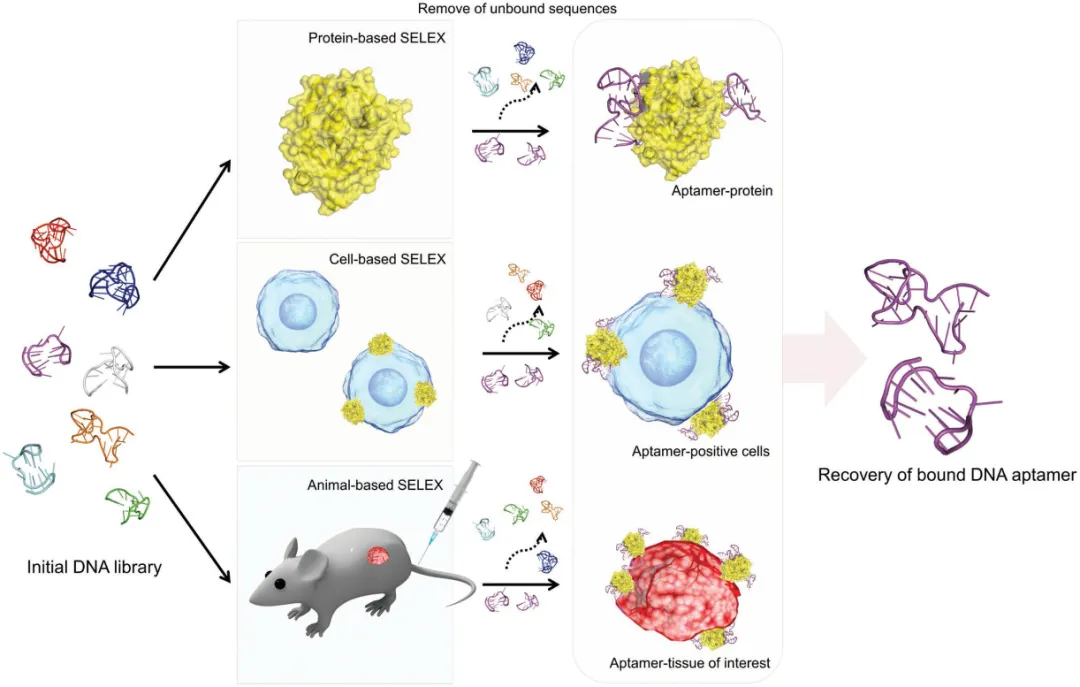 基于纯化蛋白、全细胞和活体动物的核酸适配体SELEX过程[1]